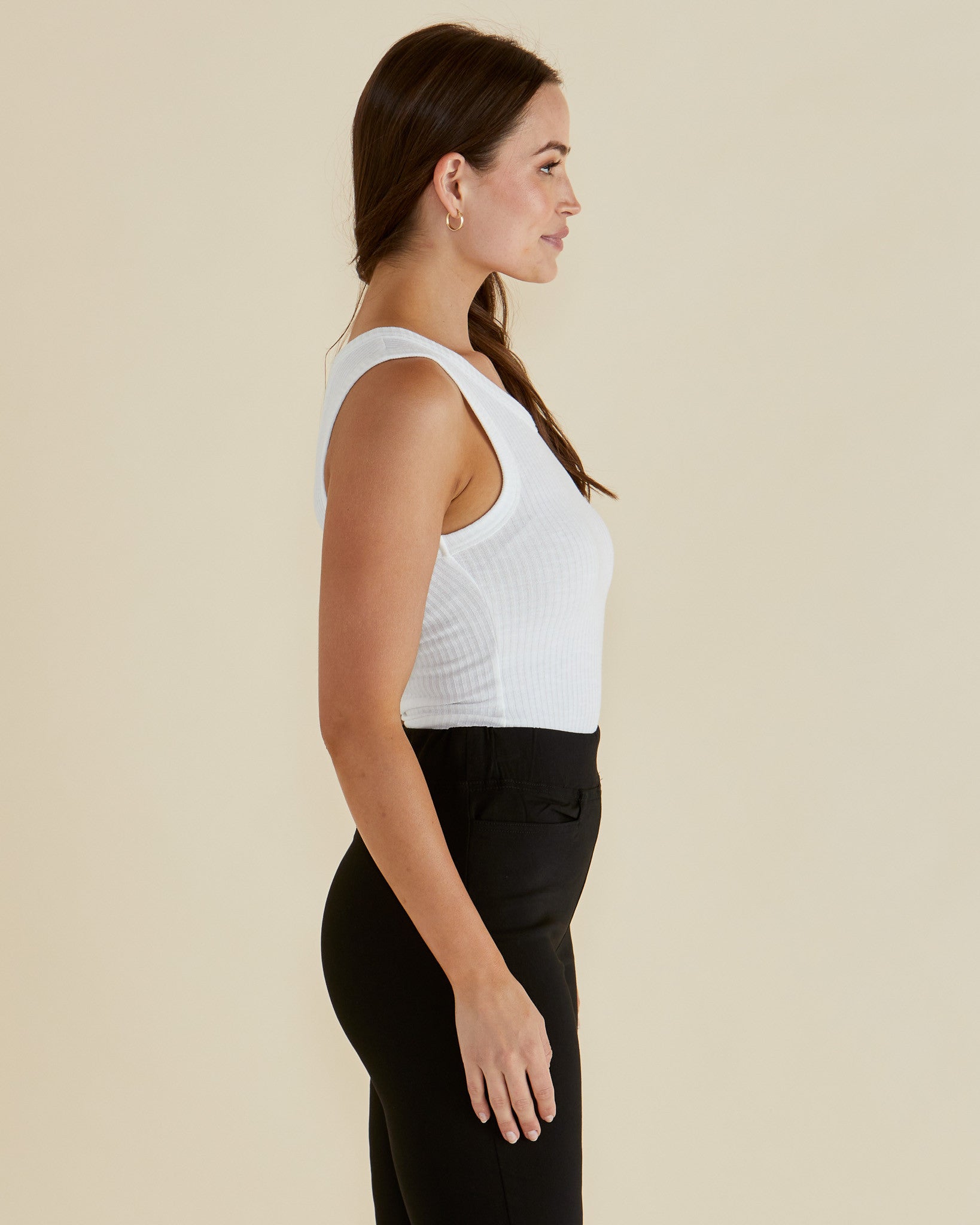 The Francis Rib Tank combines fitted comfort with a soft ribbed cotton jersey blend. Its sleeveless design and scoop neckline make it a classic, elevated essential. Perfect for layering or wearing alone, this tank offers effortless ease and style across transeasonal wardrobes.