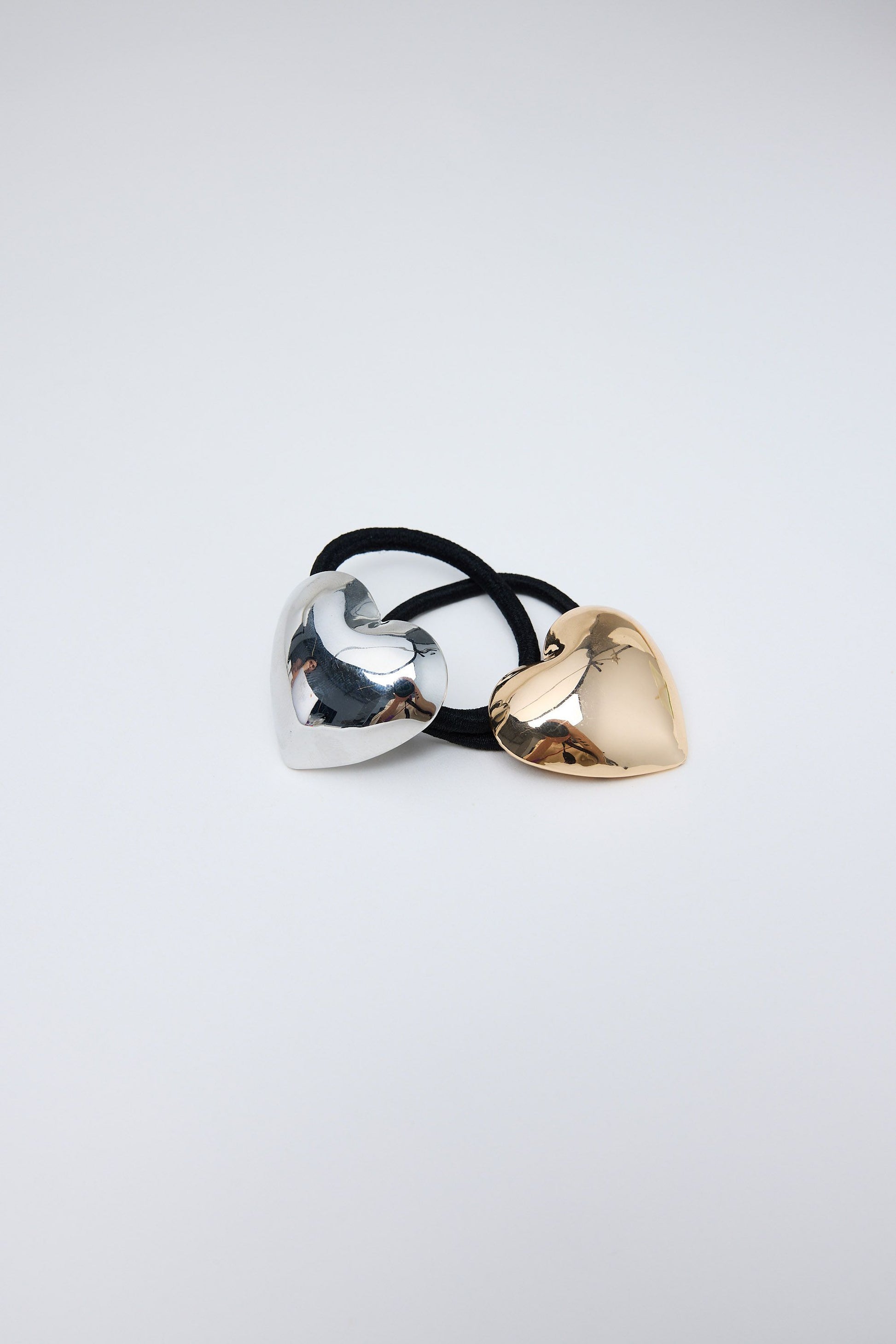 HOLIDAY LIFE : Gold & Silver Heart Set Of 2 - Hair Tie