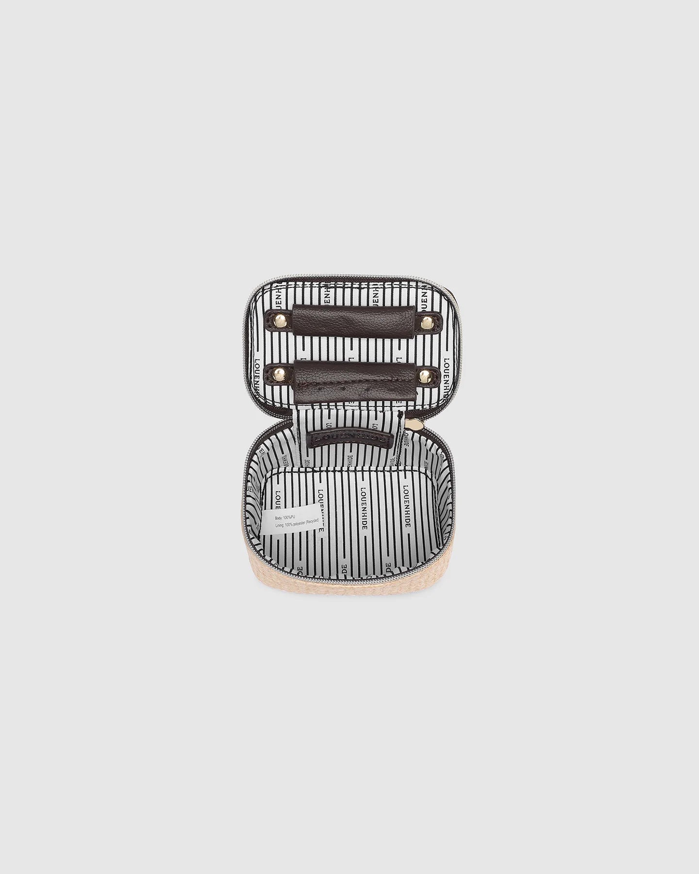 The Louenhide Trudy Natural Tan Jewellery Box is the perfect solution to keeping your valuables safely organised on the go. This compact travel jewellery case fits seamlessly into your luggage without taking up space. The secure zip closure ensures your jewellery stays protected, while the textured raffia and contrasting faux leather exterior add a touch of understated luxury to your travel style. Finished with a practical top handle, the Trudy Natural Tan Jewellery Box is a refined solution to effortless organisation.