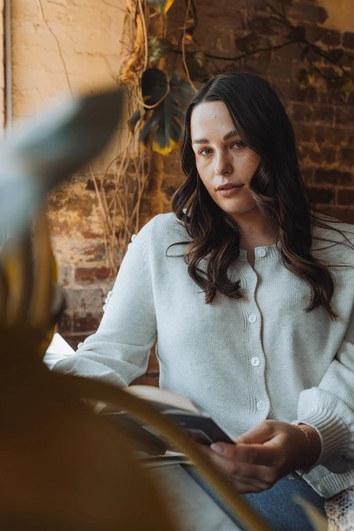 From slow mornings to sunlit afternoons, The Camellia moves with you — a cardigan made for women who live softly but with strength.