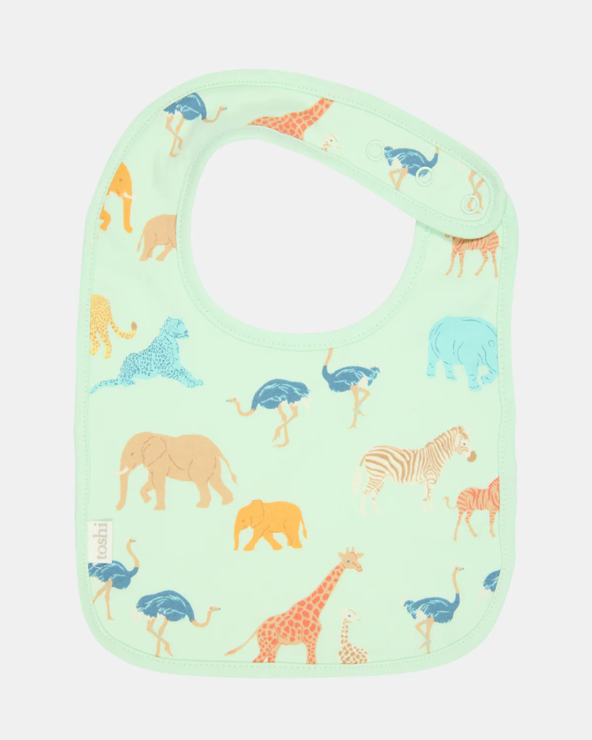 The Toshi Baby Bib Down Under is crafted from the finest quality 100% cotton. An original and exclusive Toshi print design is featured. The bibs have absorbent cotton towelling padding on the reverse for moisture protection. Conveniently located press studs create adjustable sizing. Toshi baby bibs are functional, versatile and gentle on delicate skin. Bon appetit!