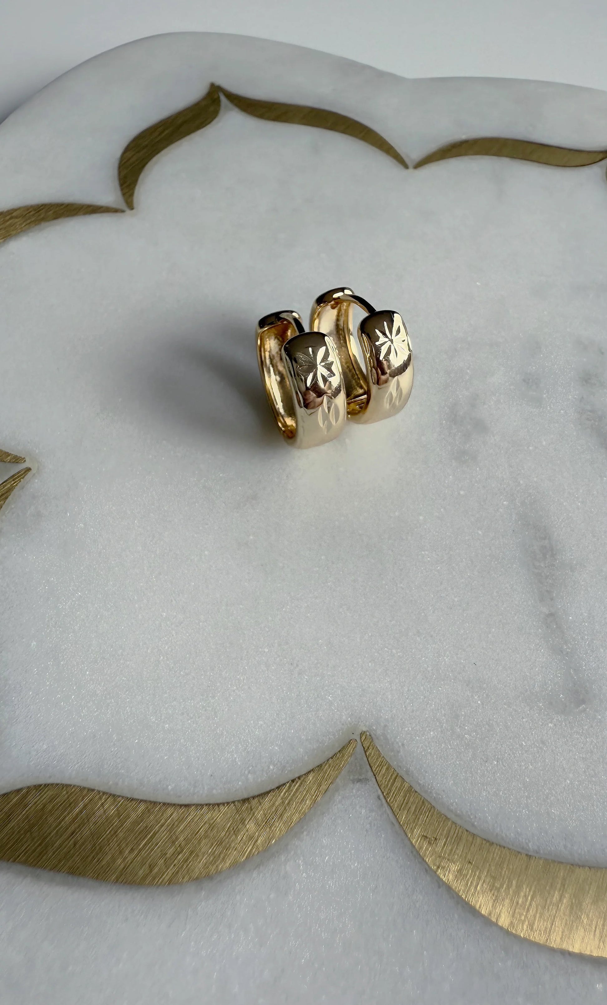 Crafted from 24K gold fill, these huggies offer a beautiful warm vintage tone and are designed with hypoallergenic posts for sensitive ears. Lightweight and easy to wear, they feature a secure latch-back closure, making them ideal for daily wear, stacking, or gifting.