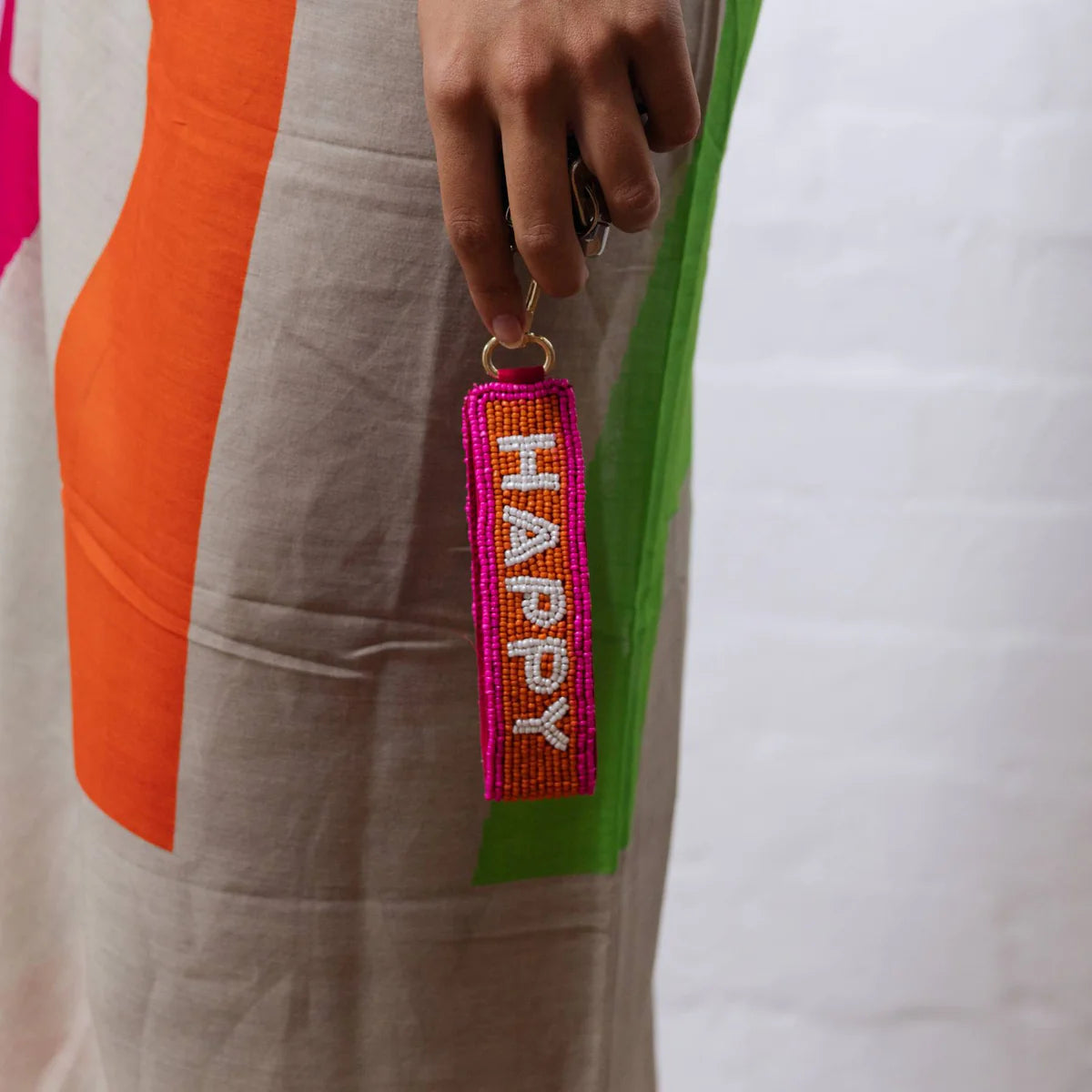 Spice up your keys with this beaded key chain with the print ‘Happy Days’.